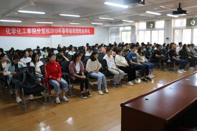 分党校2019年春季培训班结业典礼暨青马班结业典礼在知化楼115报告厅顺利举行,学院党委副书记桂晓兵老师,学生工作办公室主任王艳梅老师,辅导员马丽蓉老师出席结业典礼,典礼由兼职辅导员付影影主持,全体入党积极分子、发展对象以及青马班学员参加此次结业典礼。
