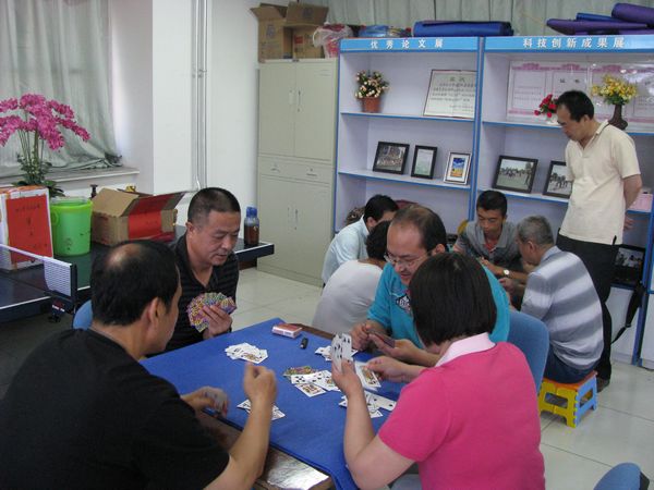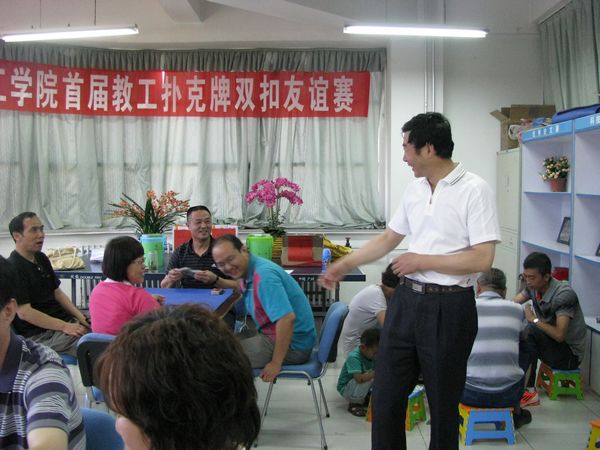 “教工之家”热闹非凡,由学院工会组织的教职工首届扑克牌双扣赛准时在这里举行。中心党支部、理科党支部和工科党支部近30名教工参加了比赛。