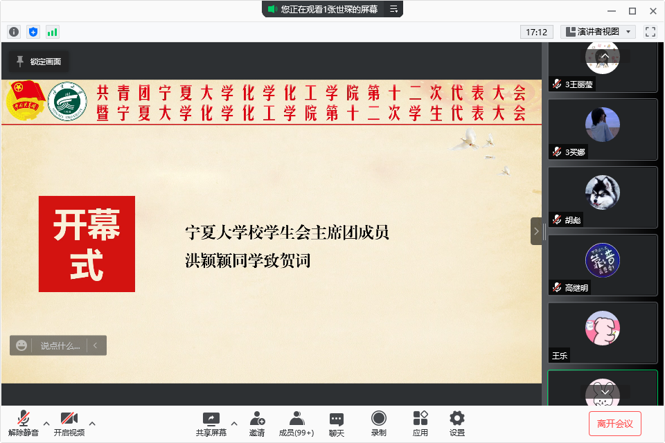 大会结束之际,海舍舍同学作为第十二届学生委员会委员代表宣读倡议书,呼吁新一届团委学生会成员不忘跟党初心,牢记青春使命。学院党委书记高继明致闭幕词,高书记代表学院党委、行政对大会的胜利召开表示热烈的祝贺!对学院团学组织今后的提出了三点希望:一要坚定理想信念,坚持立德树人,团结引领同学;二要加强理论学习,提高整体素质,增强服务本领;三要聚焦主责主业,认真履职尽责,全力服务同学。高书记在最后讲话中强调:未来属于青年,希望寄予青年。作为新时代的中国青年,我们要以实现中华民族伟大复兴为己任,增强做中国人的志气、骨气、底气,不负时代,不负韶华,不负党和人民的殷切期望!让我们在深化党史学习教育中,坚定不移感党恩、听党话、跟党走,增强“四个意识”、坚定“四个自信”,做到“两个维护”,团结一致,拼搏进取,引领学院团委学生会工作迈上新的台阶,用实际行动践行“请党放心,强国有我”的铮铮誓言,用我们的青春、汗水奋力谱写新时代的华彩乐章,为建设西部一流大学贡献青春、智慧和力量!