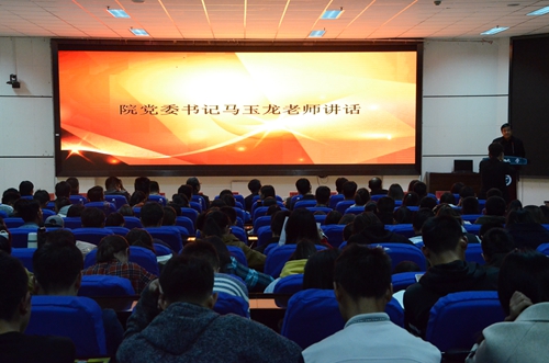 在雄壮的国歌声中,表彰大会拉开帷幕。大会伊始,倪刚院长代表学院致辞,他对本学期各项学生工作予以充分肯定,对在场全体同学一直以来的辛勤付出表示感谢并提出新的要求。期望同学们培养创新思维,勇于开拓,度过一个精彩的大学生活。随后,桂晓兵副书记宣读了表彰决定和聘任决定,各位领导、老师分别为优秀团学工作者、优秀班委、科技之星、优秀学生骨干、学习标兵、创新创业先进个人、优秀志愿者、团学新星、优秀宿舍、学习进步学生代表、优秀体育工作者、优秀文艺工作者、优秀志愿者进行颁奖,为兼职辅导员与新生班主任助理发放聘书。颁奖结束后,兼职辅导员张聪同学做了第八届学生会团委工作报告,孙琪做了自律委员会知化通讯社成立报告。马玉龙书记代表学院党委对本次表彰大会作了重要讲话,肯定了本年度的成绩的同时强调学风建设的重要性,号召优秀学生更好地发挥他们的引领示范作用,积极营造“争当先进,赶超先进”的良好院风;鼓励同学们抓住发展机遇,像榜样看齐,努力拼搏,取得更大的成绩。
