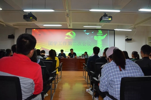 于9月10日晚在学院115开展第二次团学工作会议。此次会议由辅导员老师曹洋召开,辅导员马洁老师出席本次会议,各部门部分部员到场参与。
