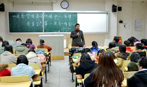 于北教122室召开团委学生会传媒中心自律委员会全体会议。党委副书记桂晓兵、刁俊,学生工作办公室辅导员王艳梅、马洁出席本次会议,全体学生干部参加了会议。