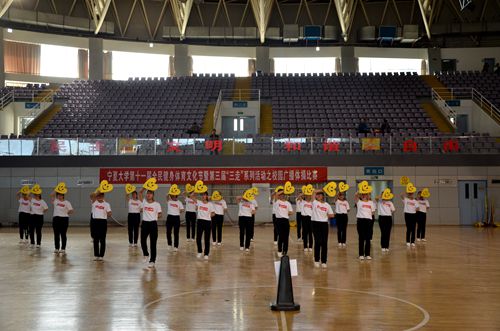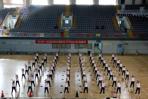 比赛开始,各参赛队伍着装统一、步伐整齐,按照抽签顺序依次上场。在热烈的掌声中,由64位女生组成的葡京娱乐场方队迈着轻盈的步伐登上了舞台,新颖的开场方式使得大家眼前一亮,同学们一边歌唱着校歌一边变换着队形,灵活的身姿和舒展的动作给在场的观众留下了深刻的印象。经过激烈角逐,葡京娱乐场以93.0的成绩获得了本次广播操比赛的第二名。