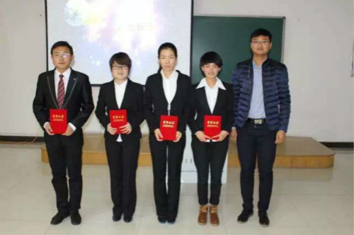 党委副书记潘瑞、学生工作办公室主任柳松洁老师、13级辅导员王艳梅老师、以及学生党员代表担任评委;学院各党支部党员、院团委学生会干部和各班班委参加。