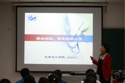 潘书记重点解读了我校资助工作的部门、内容和政策。她详细讲解了我国高校的“奖、贷、助、补、减、免”资助体系和我校资助工作评定程序,介绍了国家奖学金、国家励志奖学金和国家助学金的评定条件和化工学院经济困难学生的认定标准。