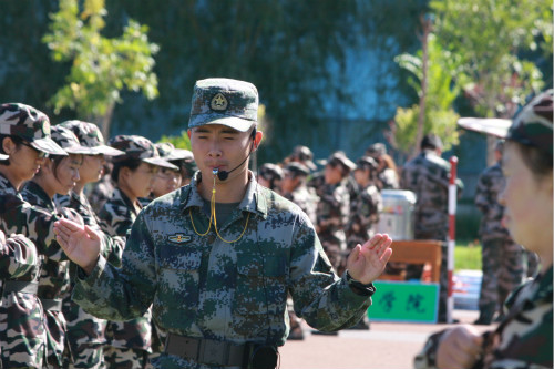 夏日虽然已经过去了,七月流火,长时间的军姿也足以让刚开始军训的新生们汗流浃背。休息之余偶尔能听得见抱怨,但更多是集体的欢笑声和嘹亮的军歌声。虽然训练中,他们也会排面不齐、挥手高低不平,但我们能看到他们在努力进步。每一次行走他们都在努力地保持排面整齐,时刻调整步伐,力求可以做到最好。