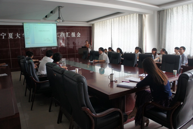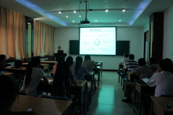 报告会议在严谨、活泼的气氛中展开,各位同学就自己研究的课题领域做了详细的介绍,并展示了自己对课题资料的前期整理、分析和归纳,用科学、形象、规范的ppt课件向导师组及研究生同学们展开了汇报。