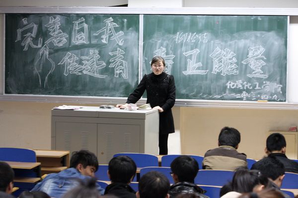 柳松洁老师从“为什么入党”、“大学在人生中的意义”和“让自己充满青春正能量”三个方面进行了阐述,她强调:作为一个大学生,要把对党的认识从感性层面上升到理性层面的认识和思考上来,发自内心的向党组织靠拢;通过不断的“折腾”来认识自我,规划人生,不断奋斗,实现人生价值。柳松洁老师还以“领头羊、中间羊、小绵羊”诙谐比喻大学生活的各个阶段,鞭策大家要不断追求,完善自我,强大自我,传递更多青春正能量。