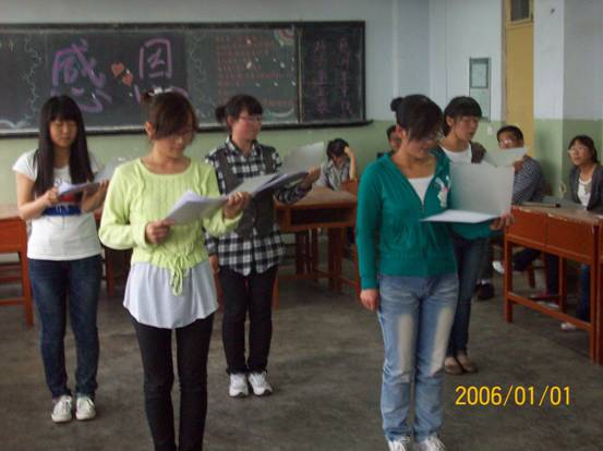 为丰富同学的业余文化生活,加强班级同学的感恩意识,展现当代大学生的精神风貌,2011年5月19日晚6点30分,由葡京娱乐场09级师范2班组织的以“感恩”为主题的小型班级晚会正式举行。辅导员老师王艳梅、学院团委书记曹洋、副书记阮超、院纪检部部长孙永刚参加了本次班会。