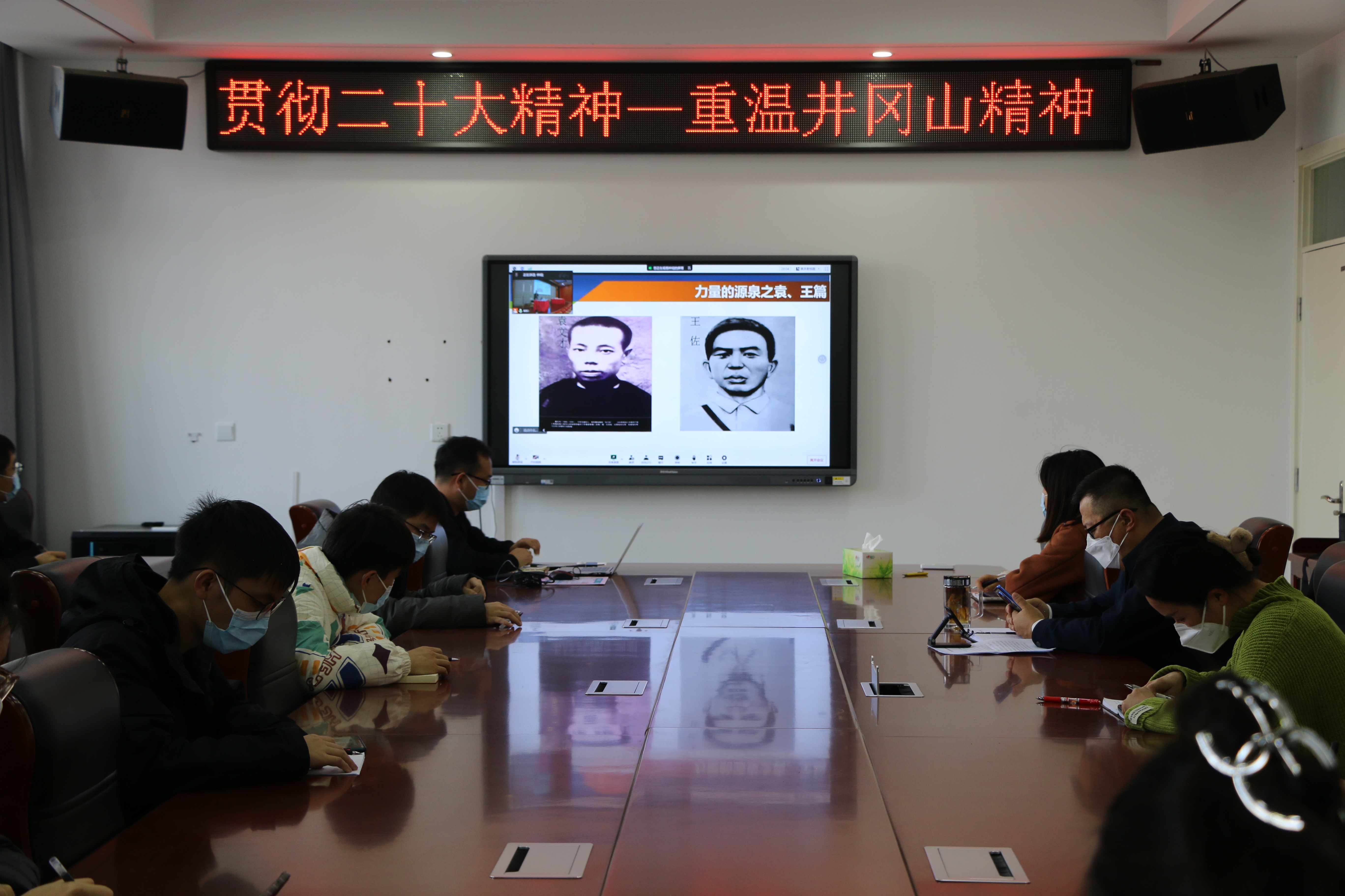 党委和党支部的基本情况及标杆院系、样板党支部创建中的特色做法。最后,学院教师党员代表及学生交流发言,讲述自己对井冈山精神的理解和党的二十大精神的学习感悟。
