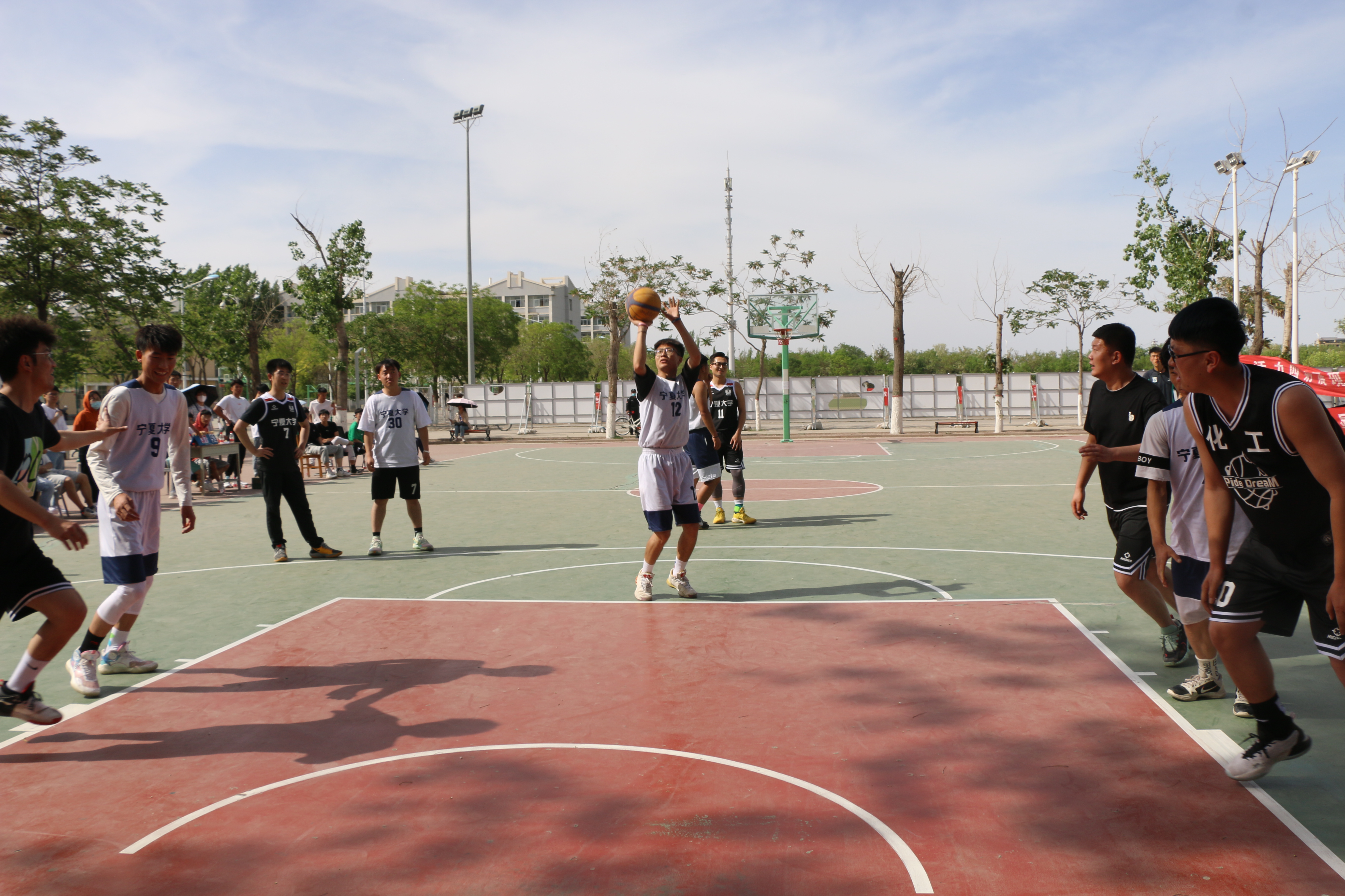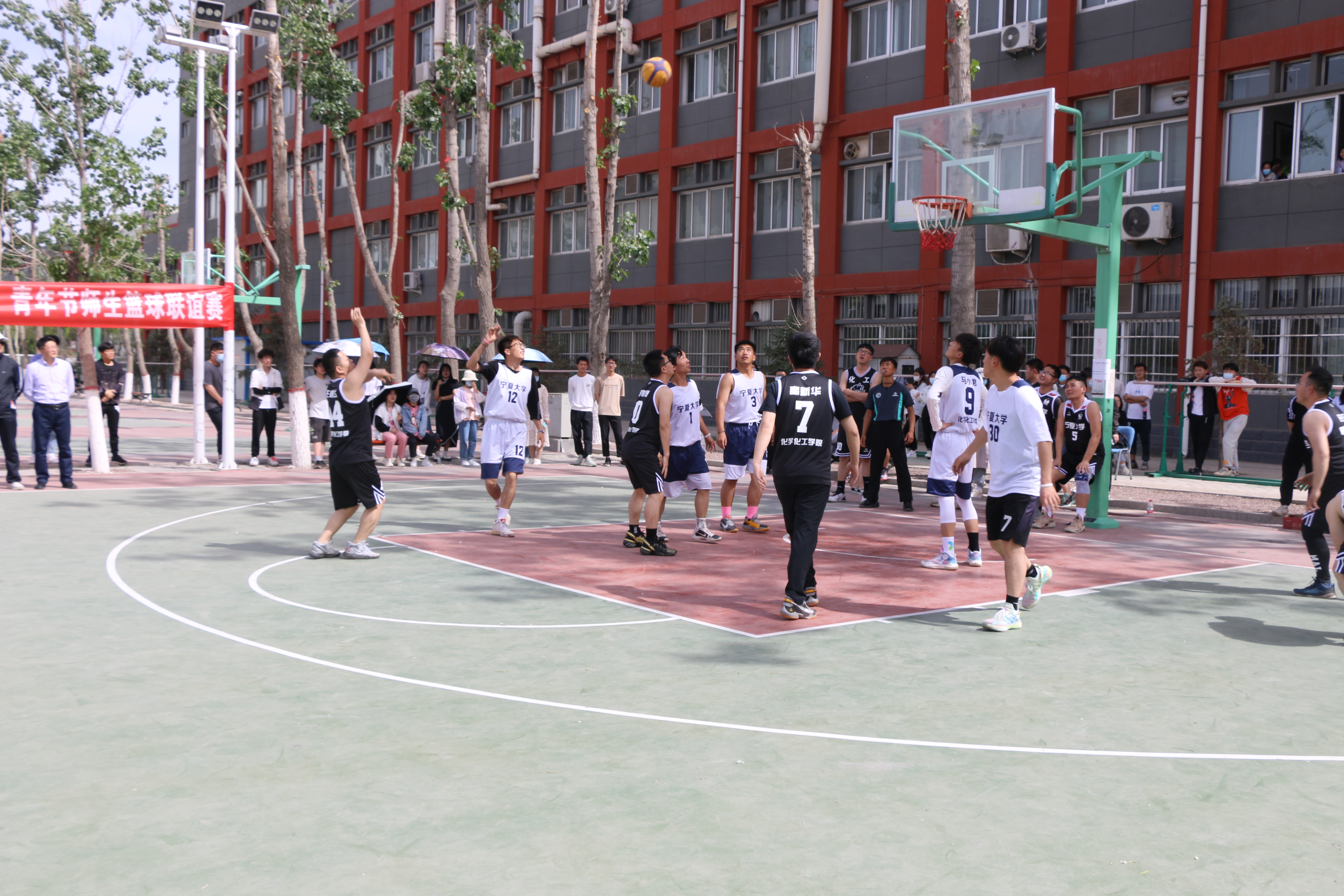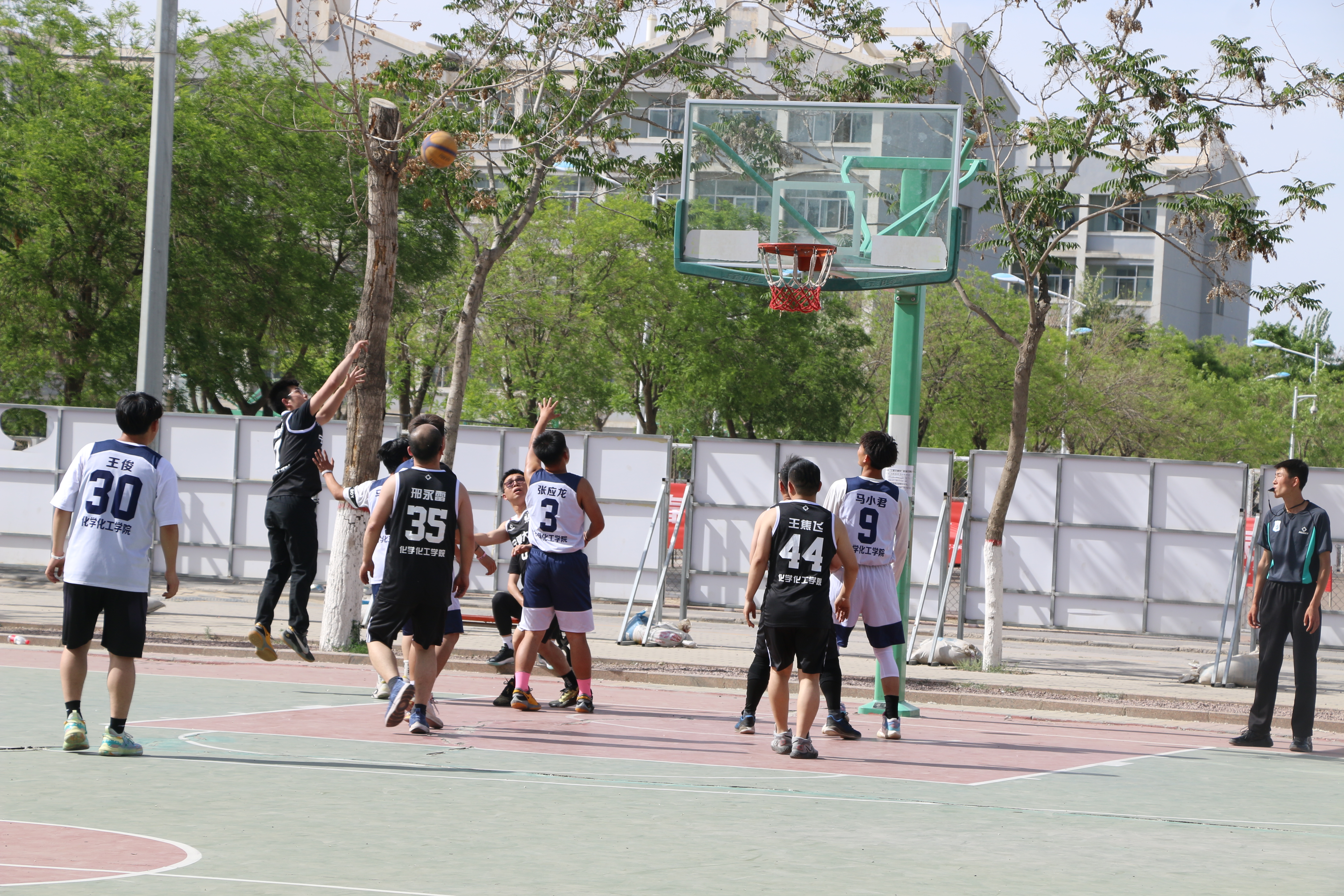 随着裁判的一声哨响,比赛拉开帷幕。只见运动员们带着球在篮球场上奔跑,他们积极跑位,精准传球、漂亮的配合和精彩地上篮。比赛异常激烈,两支球队都发挥了自身的优势,做到了最严密的防守。平日里严肃的老师们走上篮球场,竟也成了一位位篮球高手,帅气的投篮姿势更是吸引了无数的目光!