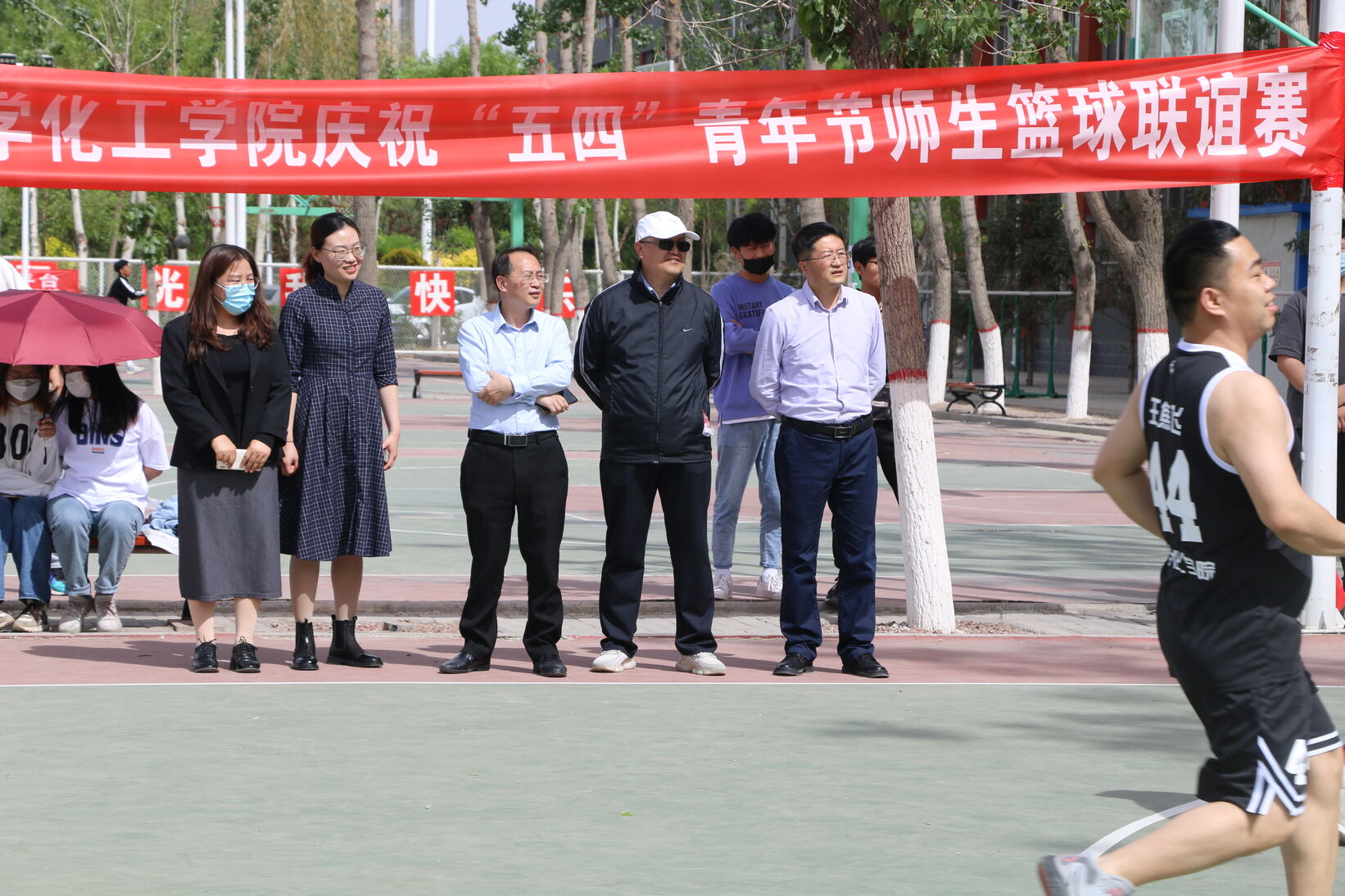 院长罗正鸿,学院党委书记高继明,校团委副书记高媛,学院党委副书记王兵,学院团委书记、学生工作办公室主任马丽蓉到场观赛。罗正鸿为此次比赛开球。