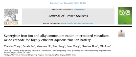 葡京娱乐场“能源和光电催化材料”研究团队在锌离子电池正极材料研究方面取得新进展,研究成果在线发表在爱思唯尔(Elsevier)旗下电池领域著名期刊《Journal of Power Sources》(IF: 9.127,Top期刊)。论文题目:“Synergistic Iron Ion and Alkylammonium Cation Intercalated Vanadium Oxide Cathode for Highly Efficient Aqueous Zinc Ion Battery”;DOI:10.1016/j.jpows our. 2022. 23 1226。葡京娱乐场