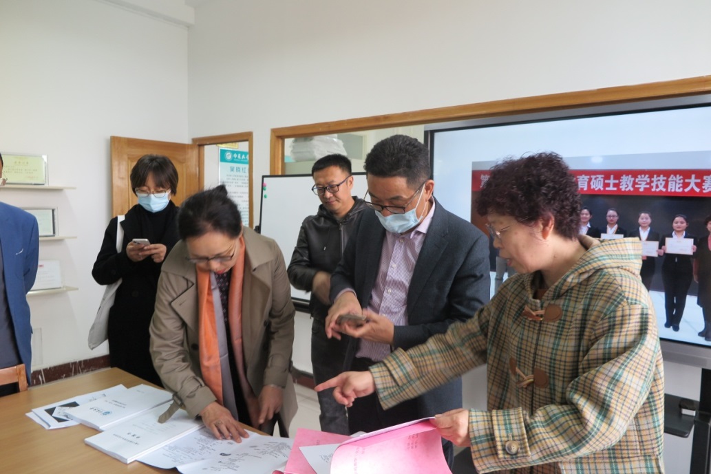 学位点负责人吴晓红教授向专家介绍了学科教学(化学)方向研究生培养方案执行情况、研究生培养经验、以及近年来所取得的成绩和存在的不足。学院副院长刘翔宇、副院长李冰、学科教学(化学)学位点部分研究生导师陪同巡查。