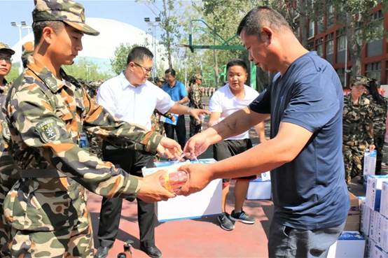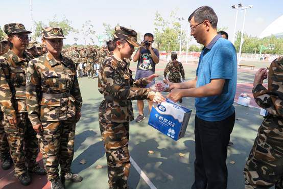 最后,学院领导为新生发放慰问品。同学们表示非常感谢学院领导和老师的关怀,一定不忘老师的殷切希望和嘱托,积极参加训练,克服困难,精益求精,争做优秀参训学员。