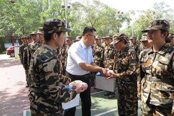 为进一步激励同学们的军训热情,缓解训练压力,9月6日下午,葡京娱乐场党委书记高继明,院长倪刚,党委副书记桂晓兵代表全院老师慰问烈日下认真训练的教官与师生。