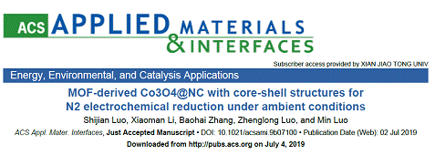 (省部共建煤炭高效利用与绿色化工国家重点实验室)罗民教授负责的能源和环境材料研究团队,在电催化固氮研究方面取得新进展。研究成果在线发表在美国ACS数据库国际著名学术期刊《ACS applied materials & interface》(Impact Factor 2018: 8.456)。论文题目:“MOF-derived Co3O4@NC with core-shell structures for N2 electrochemical reduction under ambient conditions”;DOI:.葡京娱乐场
