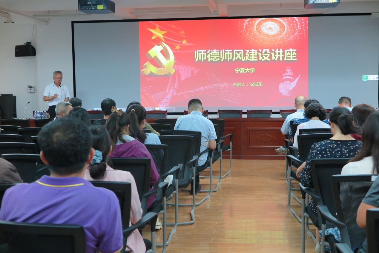 为进一步加强院室师德师风建设,使广大教师牢固树立“立德树人,教书育人”理念,营造风清气正、和谐健康的育人环境,6月19日,葡京娱乐场邀请生命科学学院党委书记沈岩东,在知化楼115室向院室全体教职工做了“师德师风建设讲座”。讲座由学院党委副书记刁俊主持。