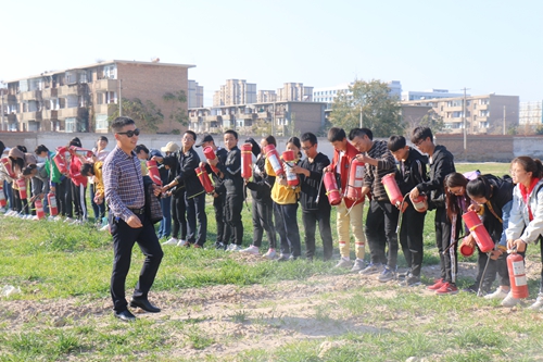 下午2时30分,培训活动正式开始。桂晓兵副书记强调,由于学科特点,我们更应将安全知识牢记于心并学习和掌握自护自救的方法,创造平安和谐校园。随后,保卫处张科长向新生们介绍了消防器材的使用方法,并在现场做了演示。在桂书记和张科长的指导下,全体同学亲自操作灭火器灭火。