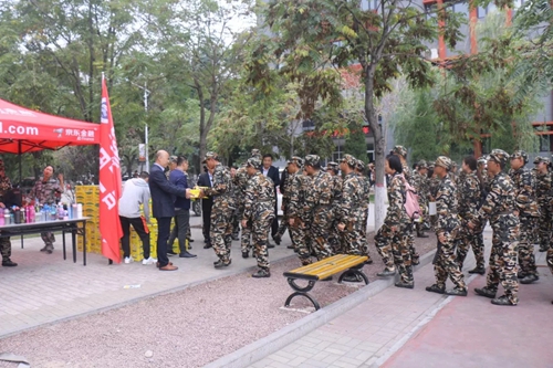 训练场上,马玉龙书记向新生辅导员详细询问了训练情况并发表了简短的讲话。对于新生在军训中体现出的不怕苦,不怕累的精神,马玉龙书记予以充分肯定并对全体新生提出了两点要求:希望新生能够遵守纪律、服从指挥,凝聚成团结的集体;希望做到劳而不怨、精益求精,在汇报表演时展现出化院人的精神风貌。马玉龙书记还从学院师资力量、学科设置、专业特点等方面做了初步介绍,鼓励新生奋发图强,勇于争优。最后,学院领导、老师们为新生发放慰问品。