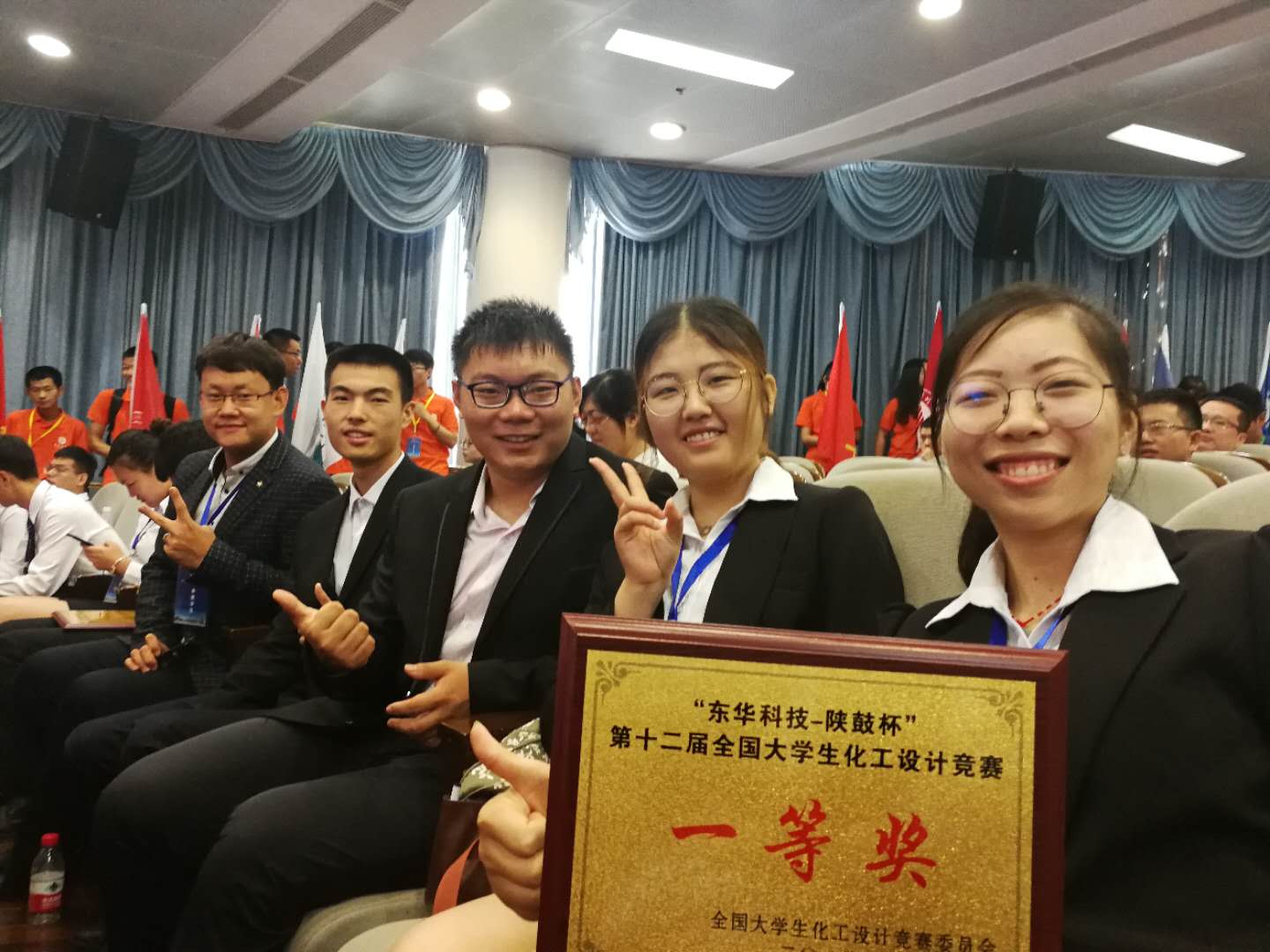 2015级化学工程与工艺专业本科生张聪、王佳、张琪、杨志华、孙琪组成的“戊问烯东”队经过校内评审、西北赛区决赛、全国总决赛,最终获得全国一等奖。