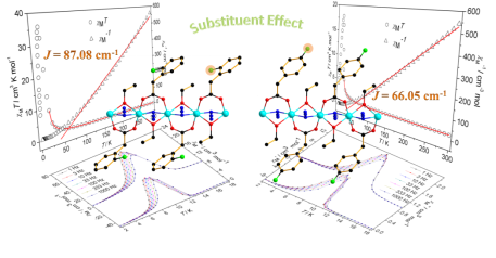 | 由葡京娱乐场刘翔宇副教授、宋伟明教授合作开展的取代基效应微扰的叠氮铜配合物分子磁体的结构及磁性研究最近取得了新的进展。该课题组近年来始终致力于设计合成新型叠氮铜单链磁体(SCM),并对目标物的结构和性能进行可控调节,获得性能优良的分子基磁性材料。 相比之前的工作,本次研究工作的亮点是利用辅助配体不同位置上的取代基效应微调两例叠氮铜化合物的结构和磁性。最终,两例化合物均呈现了令人期待的慢磁弛豫和铁磁有序特性。