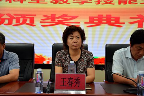 副校长许兴在颁奖典礼中致辞,他指出:本次比赛是自治区教育厅在新形势下促进教师教育课程改革,引导各高等院校为基础教育服务,培养学生基本教师职业技能的一次重要举措,大赛不仅是一次学生学业成就和才艺的展示会,也是一次激励和鼓舞广大青年学子投身教育、服务教育、奉献教育的动员会,更是一次全区化学教育教学成果的博览会。他对在场同学们提出几点希望,希望同学们能够勤奋学习、打牢基础、脚踏实地、学以致用,把个人梦和职业梦融入国家梦和民族梦,让青春无悔,让人生更加出彩!