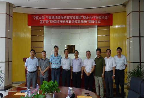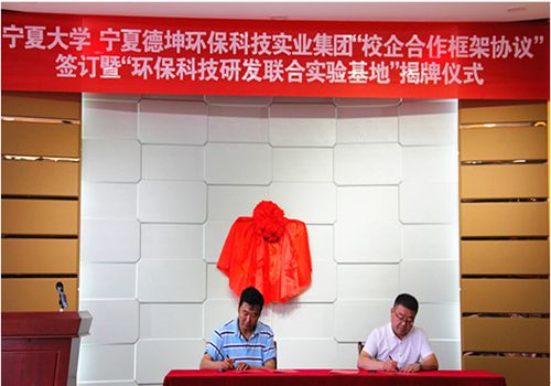 与宁夏德坤环保实业集团“校企合作框架协议”签字暨“环保科技研发联合实验基地”揭牌仪式在宁夏德坤环保集团多功能厅举行。自治区国资委企业改革发展处卢星亮处长、自治区环保厅科技标准处杨发奎处长、葡京娱乐场