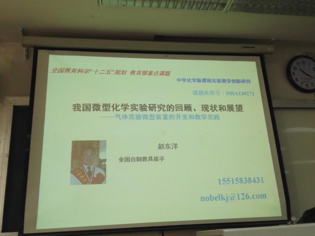 2015年12月28日上午,在C区1教122阶梯教室,河南三门峡市陕州中学教师赵东洋为学院师生作了一场题为“我国微型化学实验研究的回顾、现状和展望——气体实验微型装置的开发和教学实践”的学术报告。报告会由学院副院长倪刚教授主持,学院吴晓红、林枫等化学教育专业的老师和2012,2013,2014级师范班的学生参加了报告会。赵东洋老师结合自己在微型化学实验方面的研究,对中学化学实验微型化的研究进展和中学化学教学中的37个微型化学实验的研究做了详细的介绍。赵东洋老师的教育科研成果《气体实验微型装置》荣获全国自制教具一等奖,并获得河南省首届自然科学学术奖评选决策研究成果一等奖。