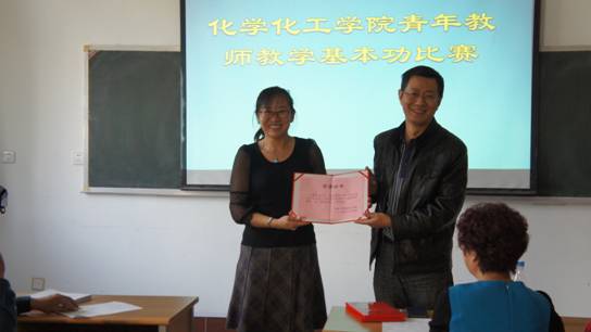 参赛教师按照事先抽签的顺序依次进行了15分钟的教学演示。教课内容精彩,涉及有机化学、无机化学、结构化学、物理化学和化工等各个领域,方式多样,风格迥异,或诙谐幽默,或严谨凝练,充分展示了葡京娱乐场青年教师的渊博学识与个人魅力。 最终,麻晓霞、彭娟和李冰分获决赛的第一、二、三名。倪院长、吴晓红教授等为获奖人员颁奖。