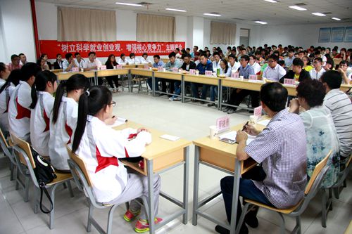 班会围绕着“职业与兴趣”、“工作与升学”、“国企与中小企业的区别”、“如何提高核心竞争力”等问题展开讨论。应、往届毕业生代表们向大家讲述了自己的求职和就业、创业经历,他们的人生感悟深深触动了在座的同学;各学科的老师们进一步阐释了“核心竞争力与专业学习及综合能力培养的关系问题”。
