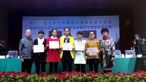 教师吴晓红、杨文远,化学课程与教学论硕士研究生毕吉利、高霞、孙婕、任斌、黄金莎、肖敏、李文婷获“优秀指导教师”奖。