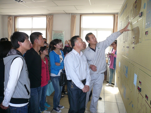 污水厂赵厂长带领师生参观污水处理的操作过程。从第一步可利用粗格栅和细格栅的物理处理分离污水中的垃圾,经历中间的十二道工序到最后一步进行化学分析仪器检测,同学们都认真地观察,积极地提问,在和技术人员的交流和切身感受中将课堂理论贯穿到生活生产实际中。在第二污水处理厂的中控室。技术人员通过主控板的演示,让师生们了解整个污水处理各个流程的自动化操作过程。