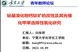 白张君博士以“铋基溴化物钙钛矿的改性及其光催化甲苯选择性氧化研究”为题,围绕绿色、低成本苯甲醛制备新技术,介绍了铋基溴化物钙钛矿的设计及甲苯选择性氧化反应性能用,探究了静电作用和直接键合方式在新型光催化材料构筑中的应用,实现了甲苯的高效转化。