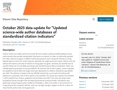榜单来源:Ioannidis, John P.A. (2023), “October 2023 data-update for "Updated science-wide author databases of standardized citation indicators"”, Elsevier Data Repository, V6, DOI: 10.17632/btchxktzyw.6