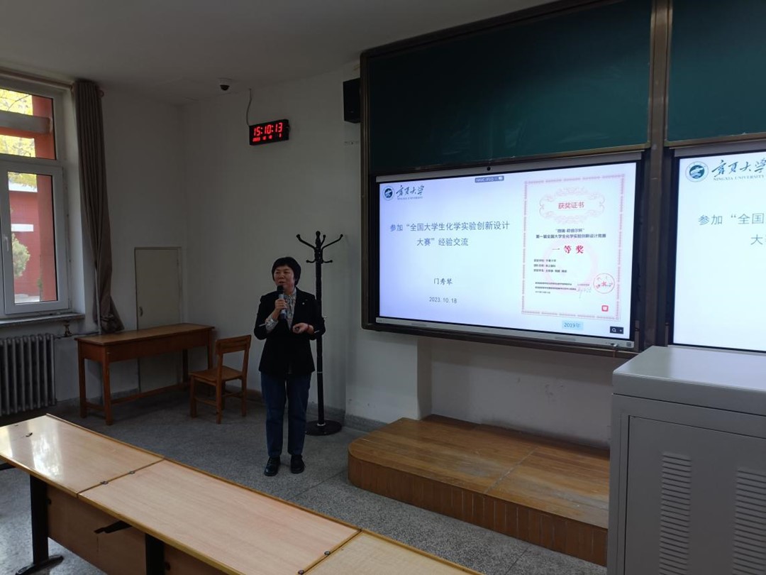 会上,孟哲教授和门秀琴副教授结合自己指导学生参加全国大学生化学实验创新设计大赛的情况,进行了经验交流,为老师们组织学生参赛提出了建议。门秀琴和孟哲两位老师分别在第一届和第二届全国大学生化学实验创新设计大赛中,指导葡京娱乐场本科生取得了全国一等奖和特等奖的好成绩。