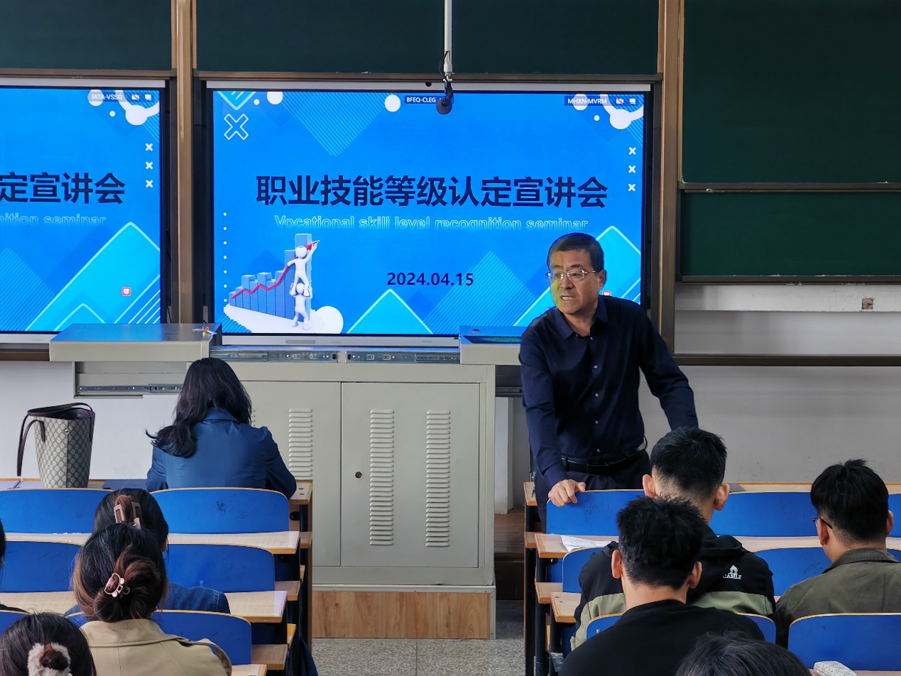 于2024年4月15日中午,组织2020级、2021化学工程与工艺专业和应用化学专业学生在文萃一教422教室参加了职业技能鉴定宣讲会。会议由李平老师主持,张晓光、麻晓霞两位老师就职业技能鉴定的意义及相关程序进行介绍。