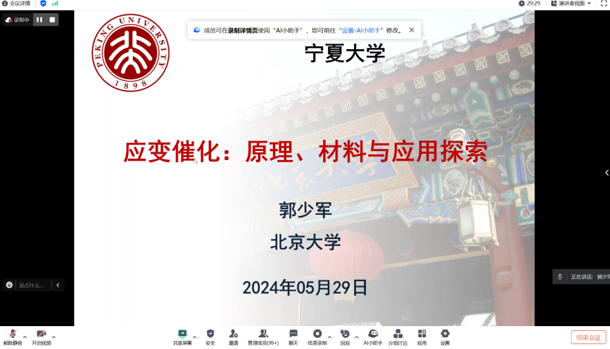 郭少军教授的学术报告是2024年全国科技周系列学术活动之一,不仅活跃了学院学术交流氛围,还启迪了师生对学术研究方法的认识,加深了对应变催化的理解。