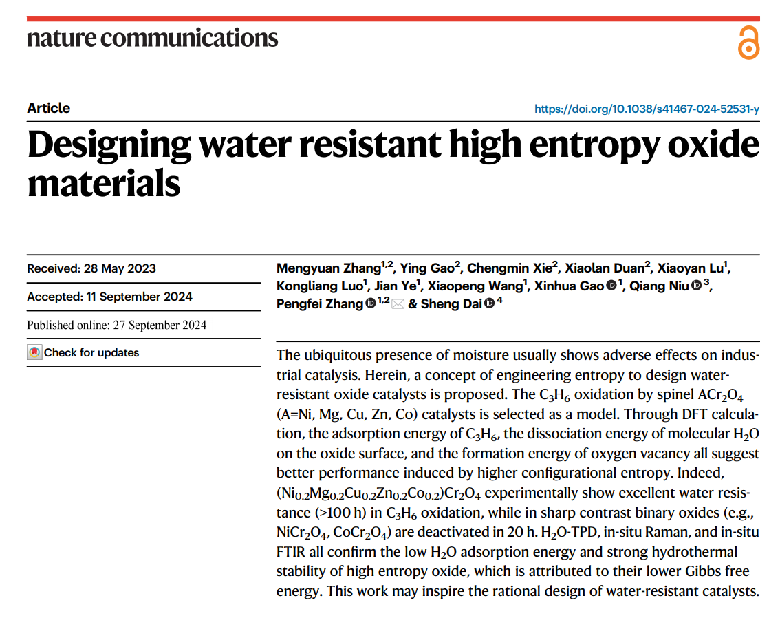 张鹏飞课题组在高熵氧化物抗水机制研究方面取得进展。该工作以“Designing water resistant high entropy oxide materials”为题发表在国际重要期刊《Nature Communications》。该论文第一作者为博士生张梦媛,张鹏飞教授为唯一通讯作者,葡京娱乐场