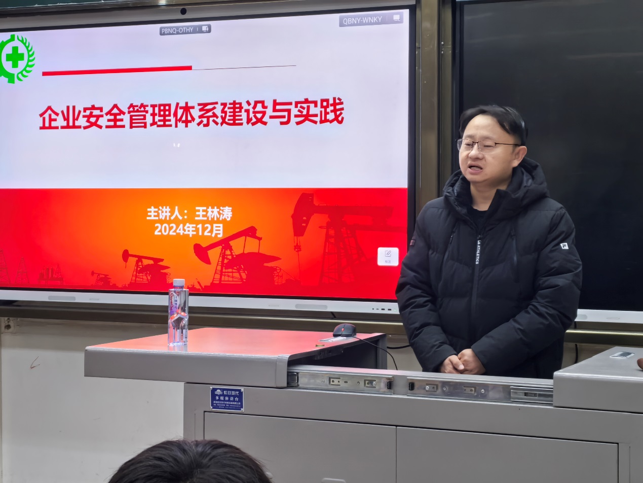 王林涛经理通过分享自己从事安全管理工作的丰富经验和经历使同学们对化工企业安全管理工作有了更加深入的认识,使企业专家深入参与人才培养过程,充分发挥产教融合的协同育人作用。