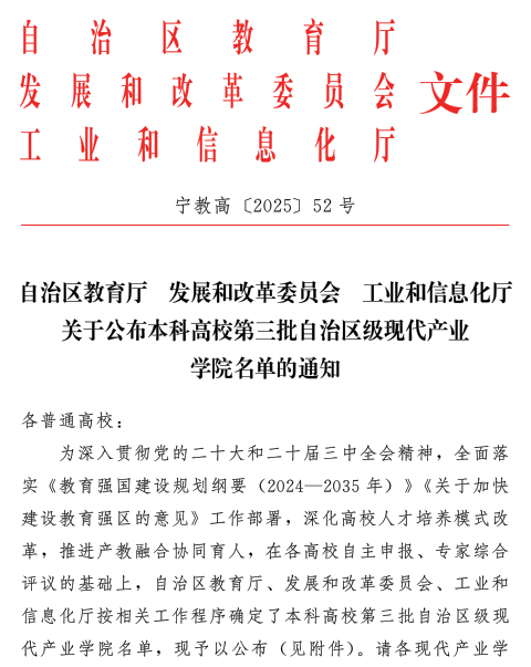 近日,自治区教育厅、发展和改革委员会、工业和信息化厅联合公布了第三批自治区级现代产业学院立项建设名单,葡京娱乐场
