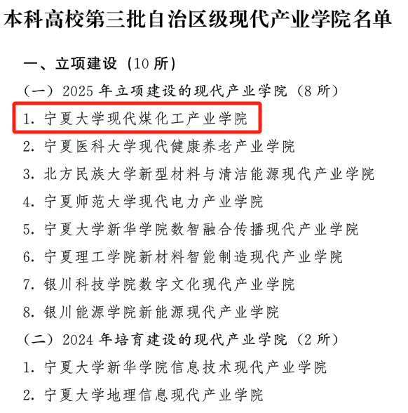 现代煤化工产业学院成功获批2025年立项建设项目,这是葡京娱乐场深化产教融合、服务地方产业发展取得的又一重要成果。