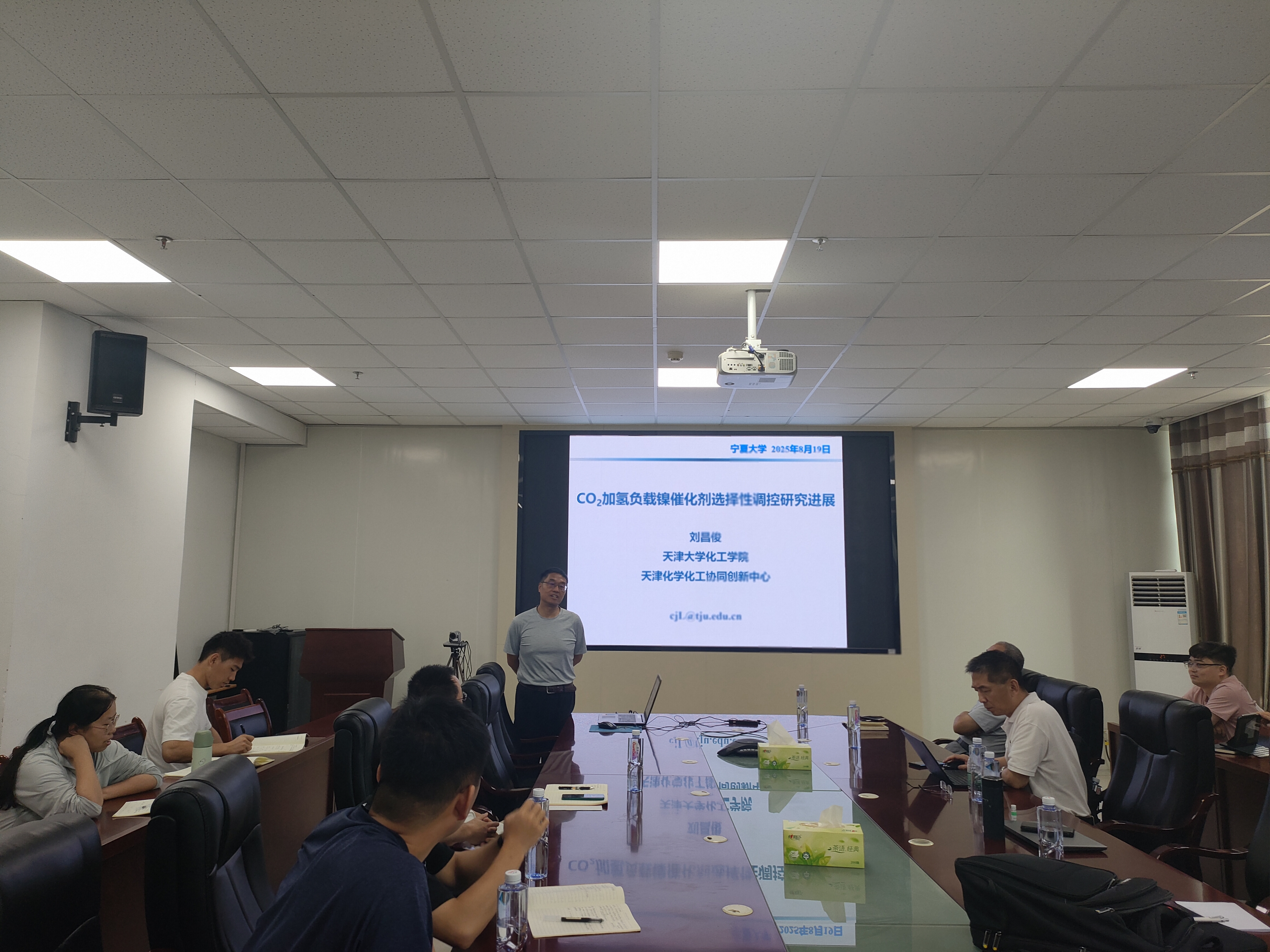 梅东海教授以“凝聚水相体系非均相催化反应理论研究”为题,讲解了凝聚水相体系中金属,金属氧化物和分子筛三种主要固体催化剂上表面反应过程。屠昕教授以“可再生电力驱动的等离子体绿色化工”为题,介绍了等离子体技术这一新兴技术在合成燃料和化工产品(包括合成氨、二氧化碳转化和甲烷活化)领域的前沿和进展。刘昌俊教授以“CO2加氢负载镍催化剂选择性调控研究进展”为题,重点介绍了氧化铟及其负载金属催化剂在CO2加氢合成甲醇方面的应用基础研究成果。三位教授的精彩报告促进了葡京娱乐场师生对催化领域前沿的深入了解,激发了大家的科研热情。