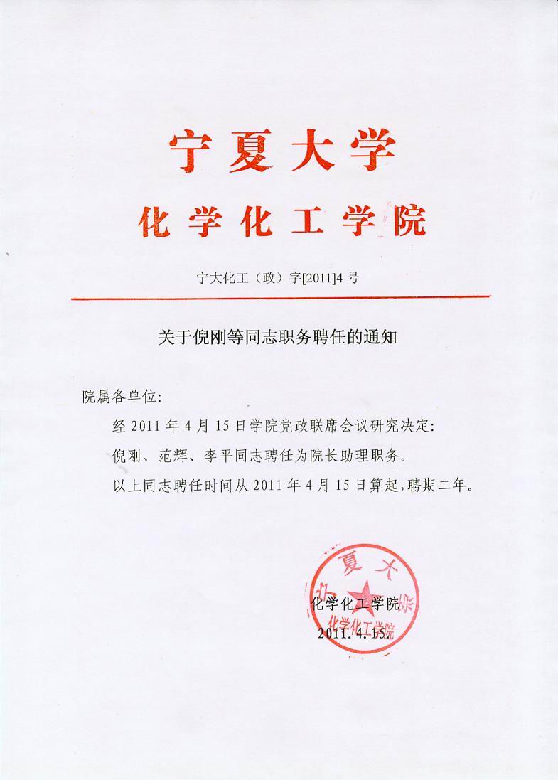 关于倪刚等同志职务聘任的通知