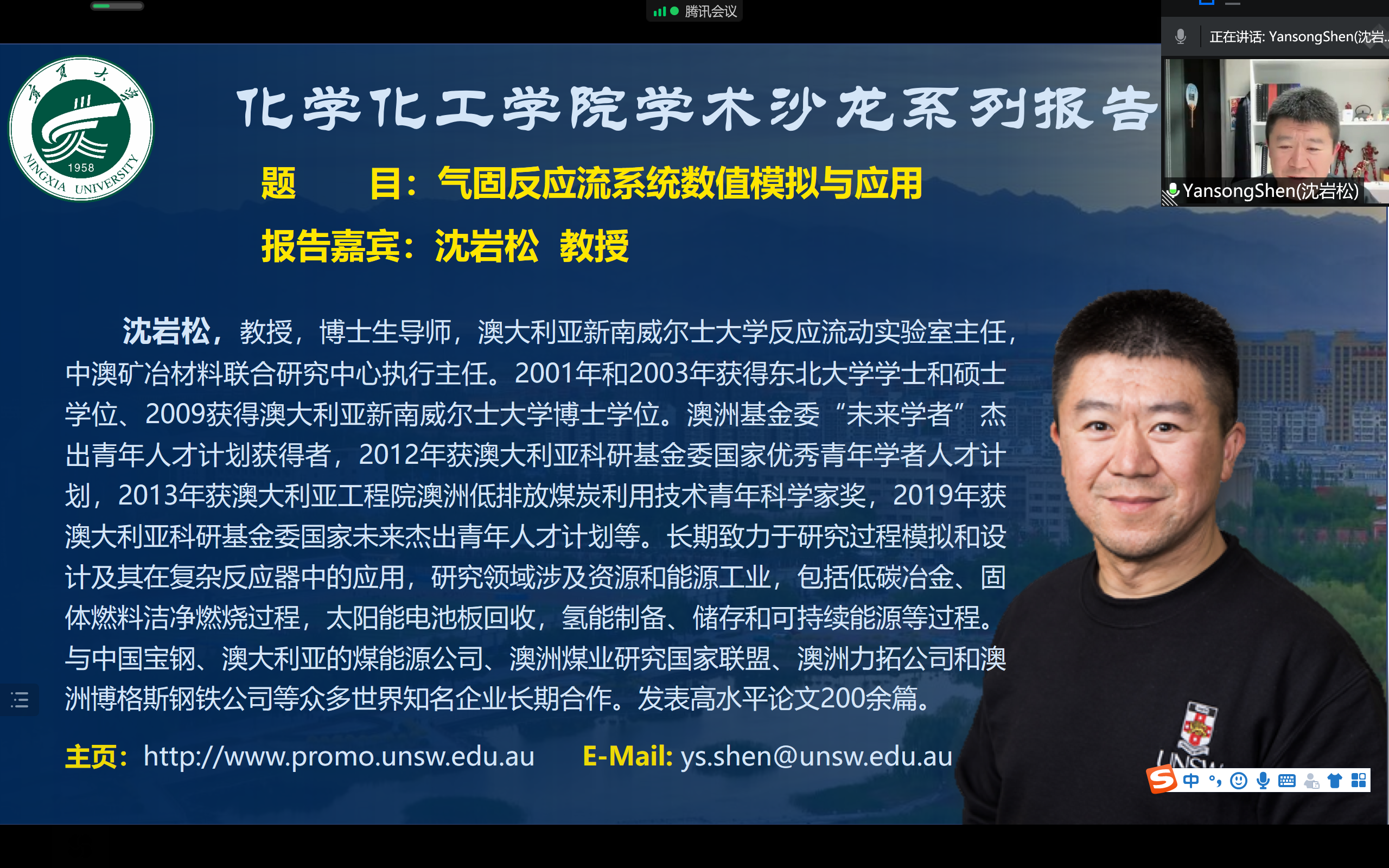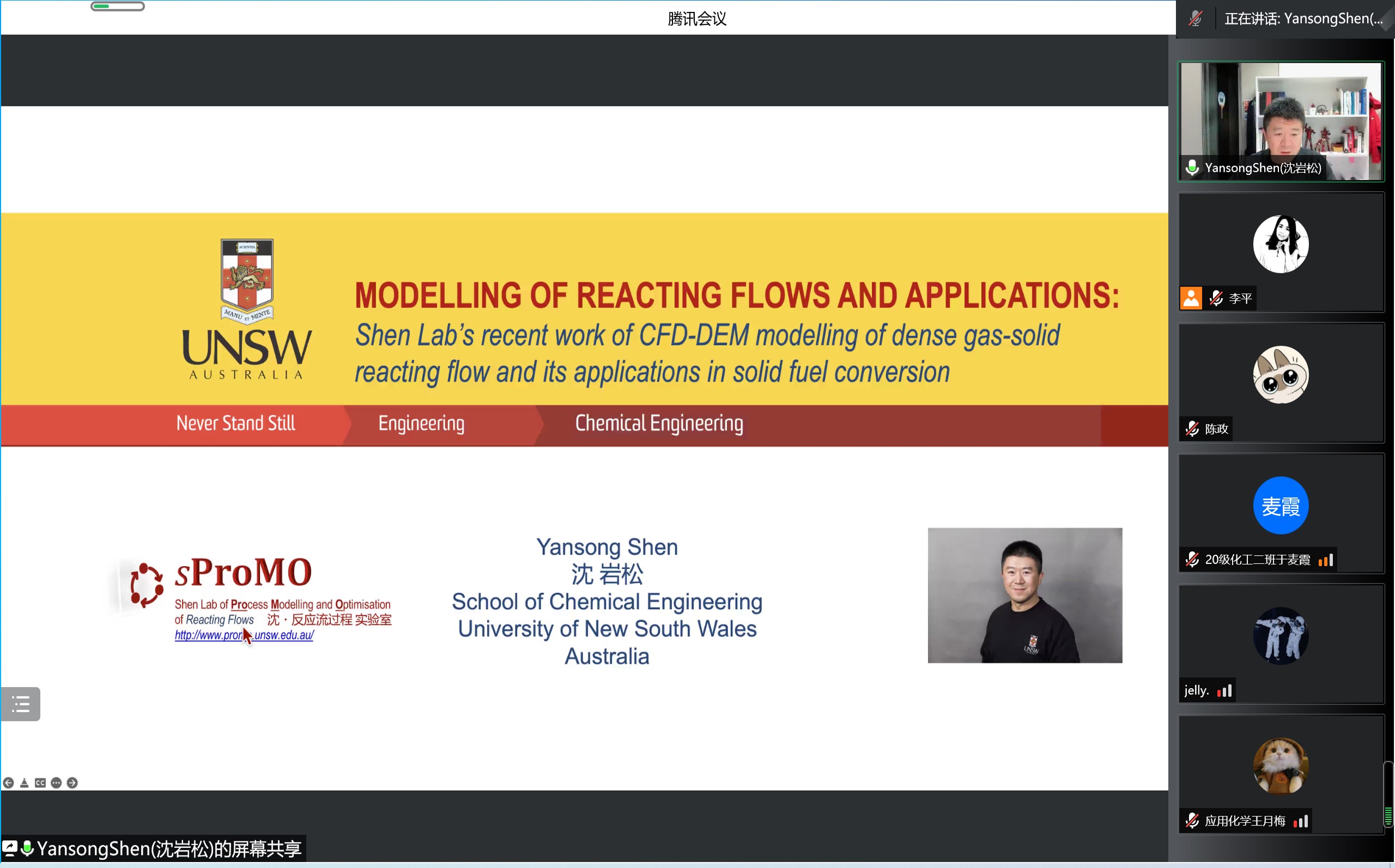 学术沙龙系列报告邀请澳大利亚新南威尔士大学(UNSW)反应流动实验室主任沈岩松(Yansong Shen)教授以线上方式开展了题为“气固反应流系统数值模拟与应用”的学术报告。