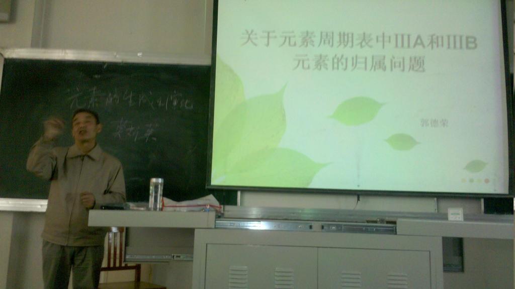 3月20日下午,在C区1教121多媒体教室,退休教授郭德荣老师为葡京娱乐场师生作了一场关于元素中期表中ⅢA和ⅢB元素的归属问题的学术报告。报告由学院倪刚副院长主持,学院部分师生共计200名参加了报告会。
