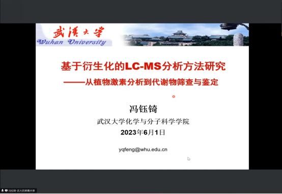 冯钰锜教授以“基于衍生化的LC-MS分析方法研究——从植物激素分析到代谢物筛查与鉴定”为题作了报告,细致入微地讲述了植物激素分析的目标和意义。详细讲述了衍生化技术应用的重难点与高MS响应的衍生化试剂合成思路,讲述了油菜素内酯分析方法、高CID电压-伪多重反应监测(HV-p-MRM)及CID碰撞能量对信号、信噪比的影响以及多种类植物激素的同时测定的解决策略。