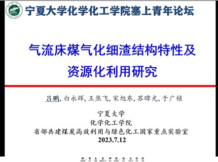 随后,吕鹏博士以"基于碱及碱土金属作用解析的生物质与煤热转化过程研究"为题,针对现代煤化工产业煤气化细渣亟待无害化处置和资源化利用的现状,对煤气化细渣的结构特性进行了细致分析,分别从细渣碳灰分离及残碳掺烧、制备吸附剂用于有机废水吸附净化、制备催化剂用于生物质热解焦油催化提质两方面进行了煤气化细渣资源化利用的探究,为煤气化细渣的利用提供了思路。