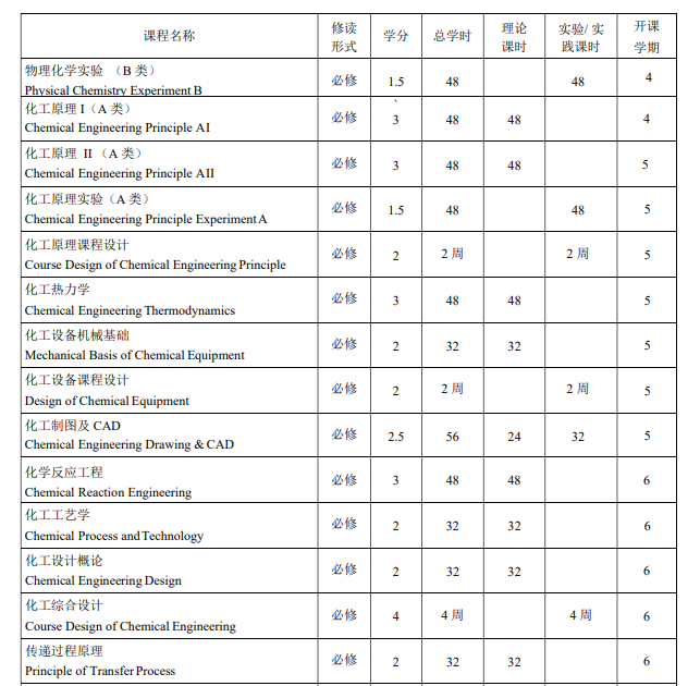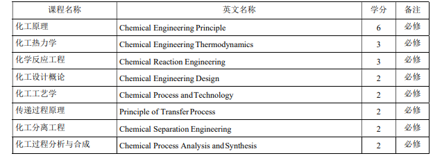 核心课程:化工原理、化工热力学、化学反应工程、化工设计概论、化工工艺学、化工分离工程、化工过程分析与合成、传递过程原理。