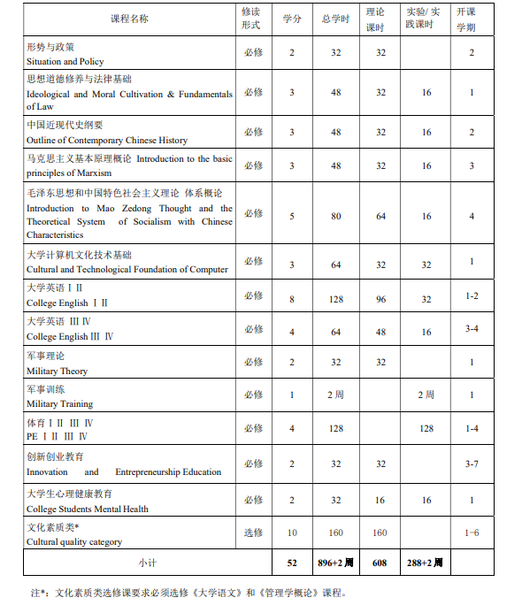 (一)通识教育课程